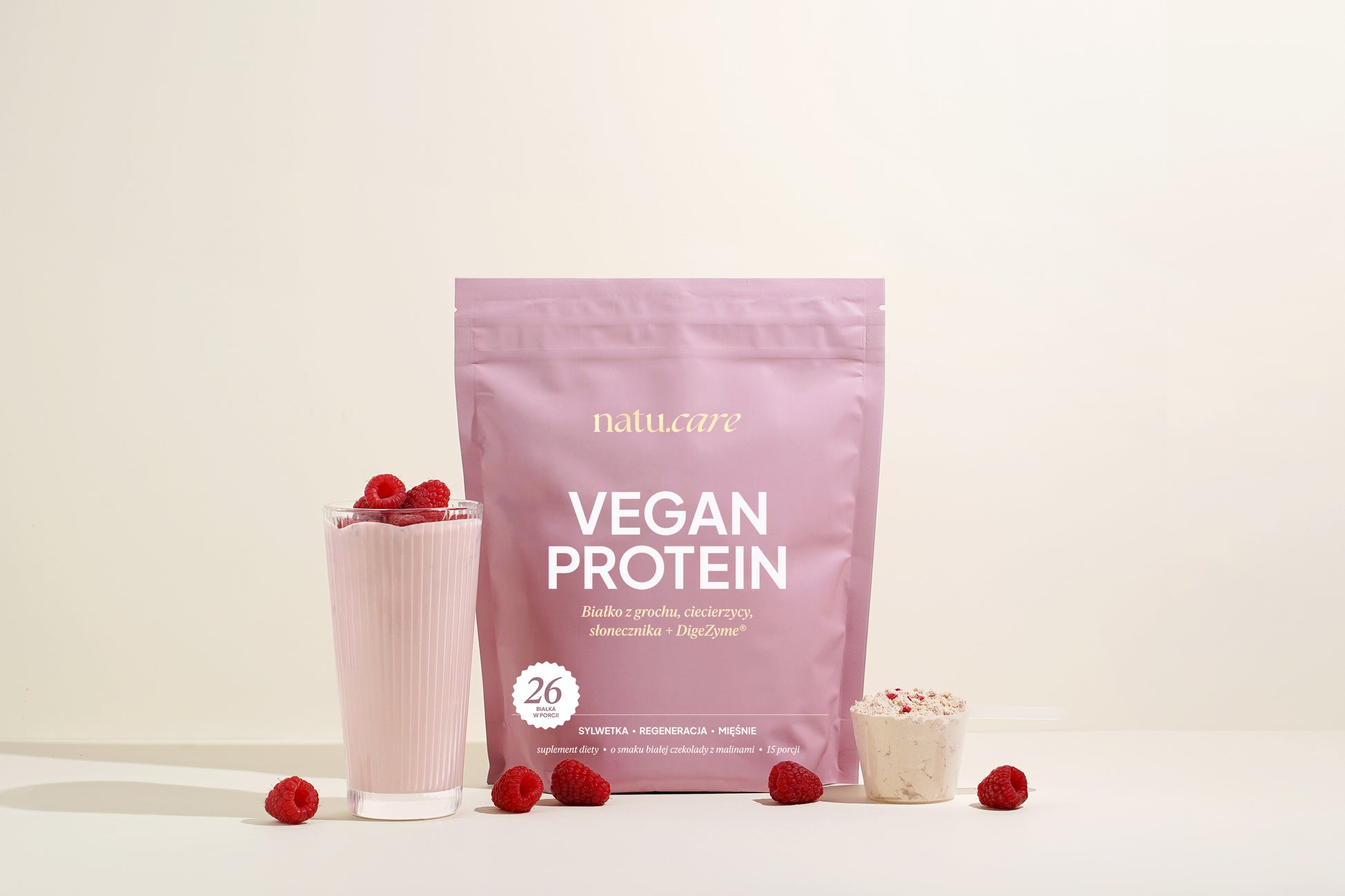 Białko Wegańskie, biała czekolada - malina
